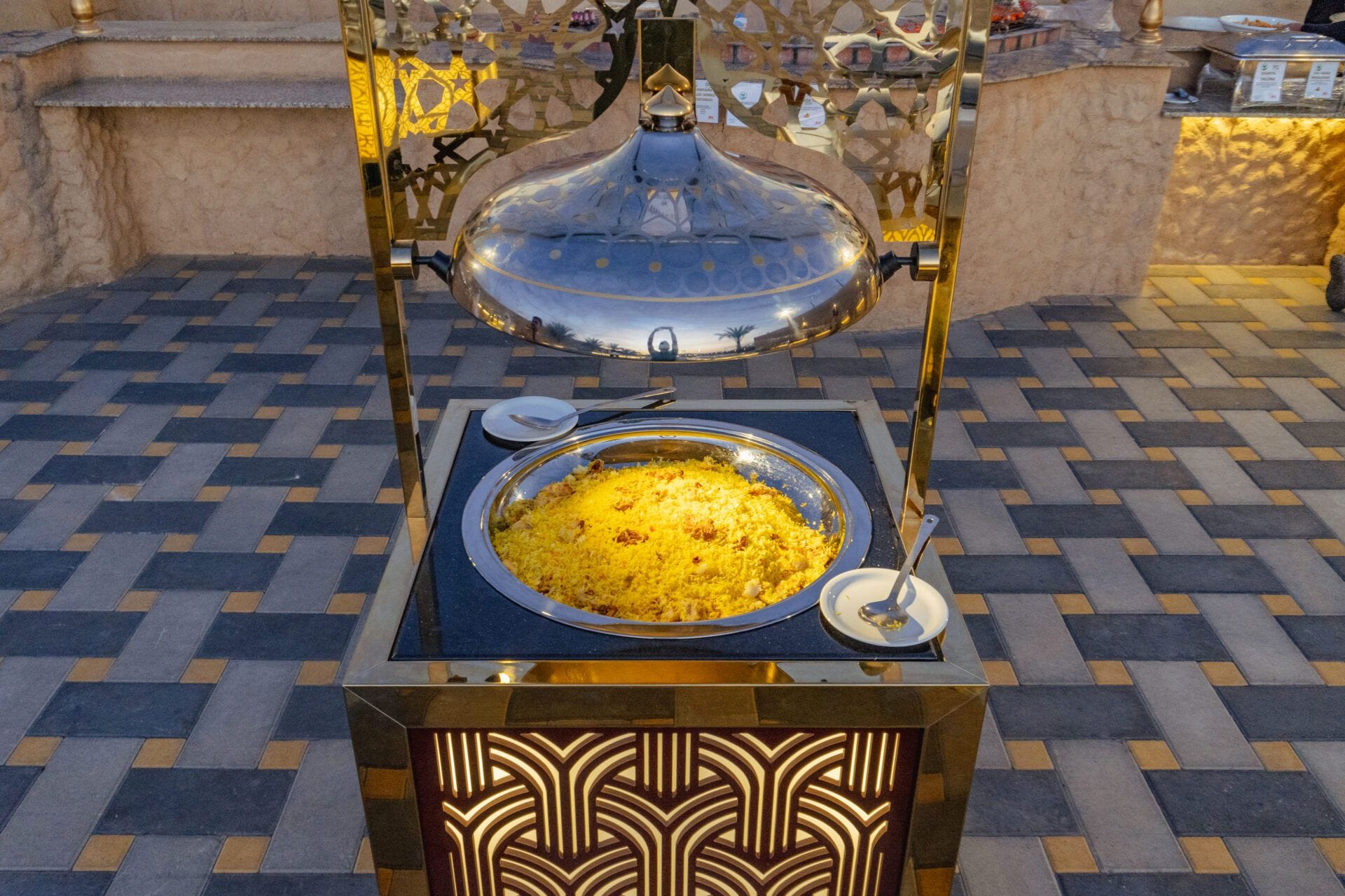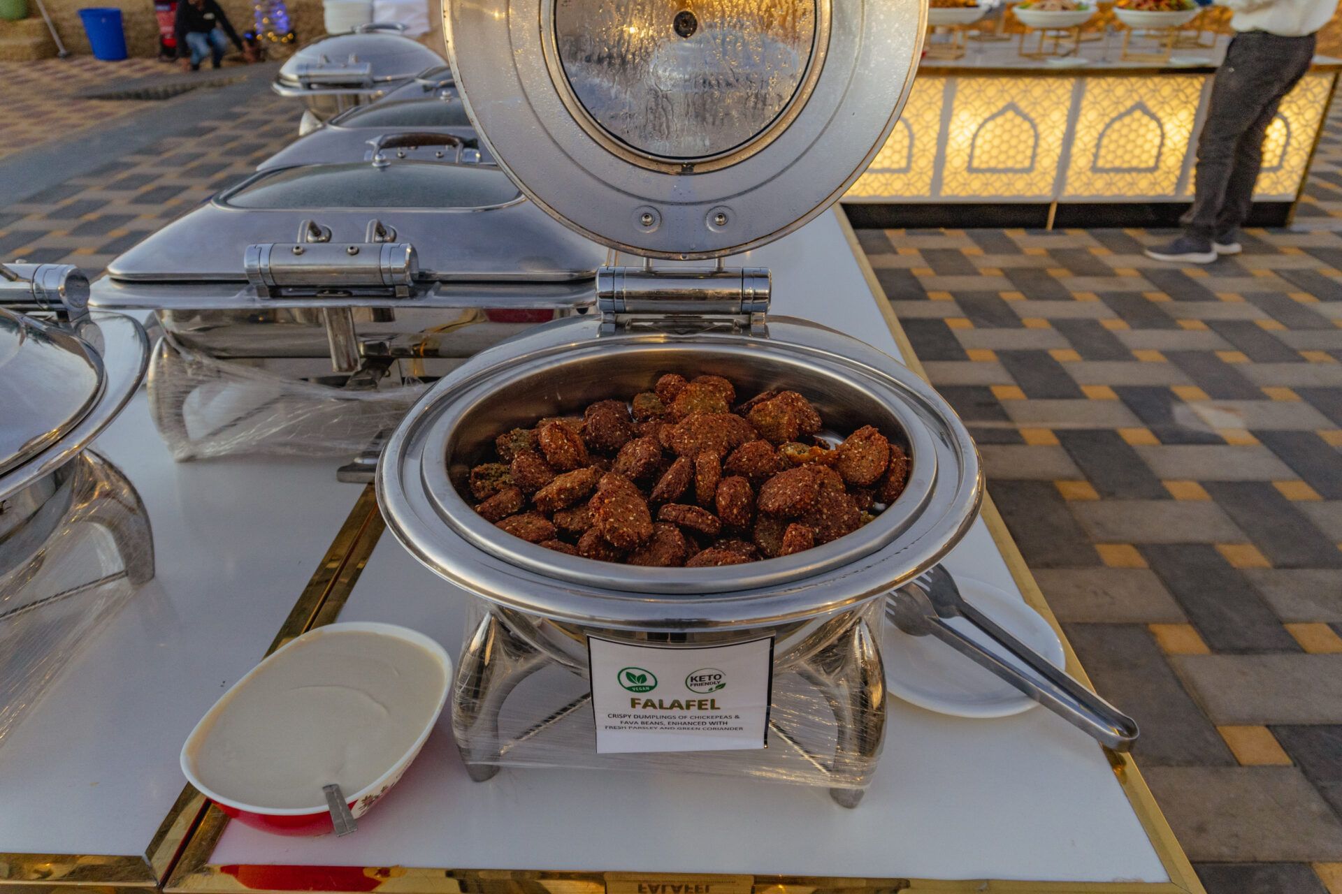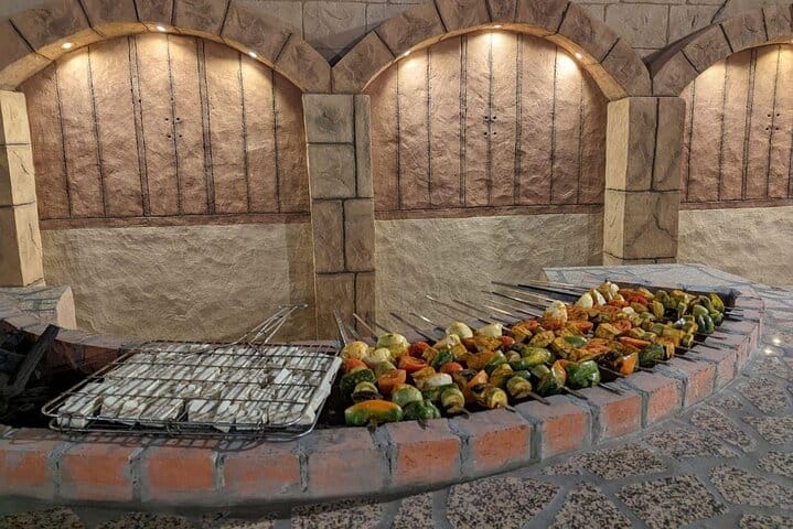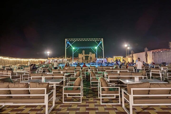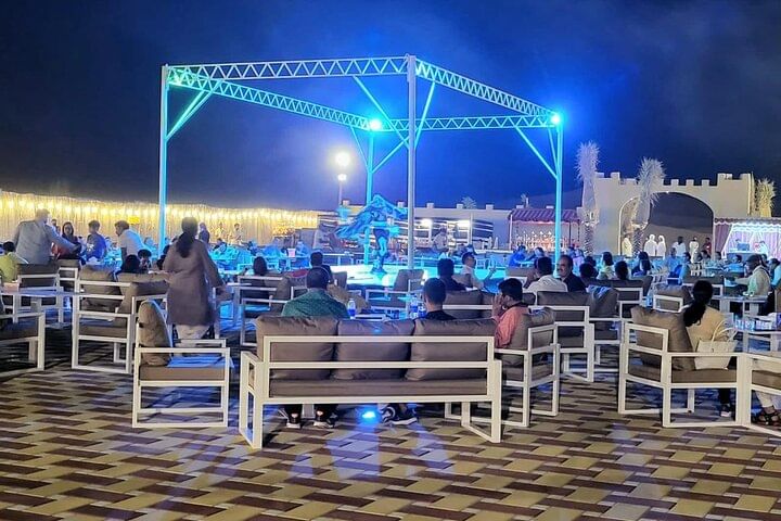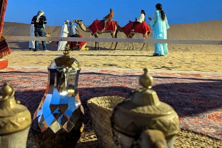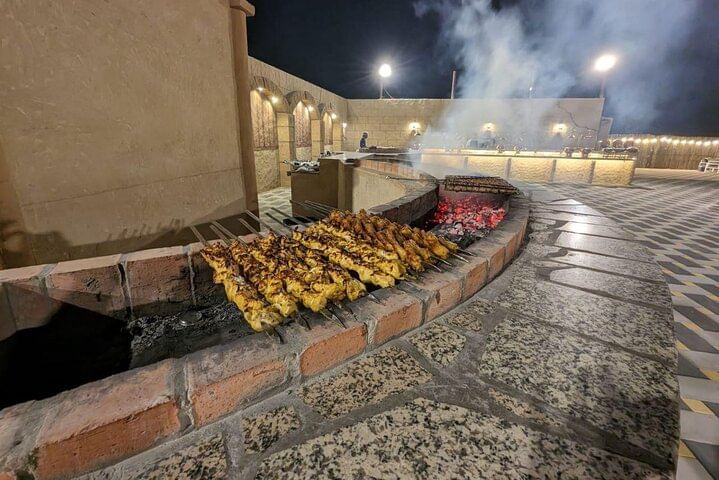 Arrive at our lavish campsite, where traditional hospitality awaits. Immerse yourself in authentic desert experiences, from camel rides to henna tattooing and dressing up in traditional Arabic costumes for unforgettable photos. Indulge in a sumptuous international buffet dinner featuring over 45 dishes, including mouth-watering BBQ specialties, accompanied by unlimited non-alcoholic drinks.