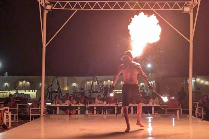 Prepare to be mesmerized by our captivating entertainment program, featuring talented performers showcasing Tanoura, belly dancing, and fire shows. Relax and unwind as we chauffeur you back to your drop-off location after a night filled with unforgettable experiences.